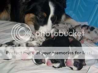 Everyone is doing well. The whole litter gained except little Fiona, who is definitely having a harder time than the rest. Born at just 11oz (compared to the 12.5oz to 1lb of everyone else), she dropped to 10.5oz. She's still quite strong, but the bigger puppies are pushing her off of mom. We're watching her closely and making sure she spends plenty of time latched on. Without further ado, photos!